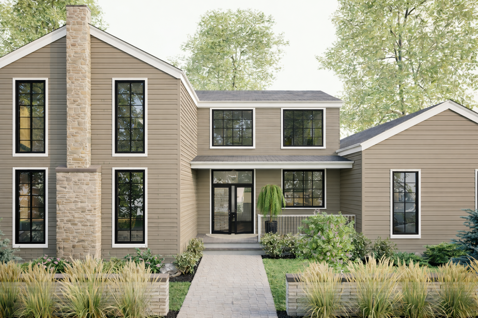 They introduce subtle color that enhances curb appeal while remaining refined and timeless, and they pair especially well with modern window frames and simple architectural details. For a crisp, balanced finish, these siding colors are best complemented by Arctic White or Pearl Gray trim.
